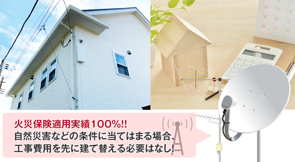 さらにテレビアンテナ工事費用を先に建て替えていただく必要はありません!保険金が入り次第お支払いいただければOKです。