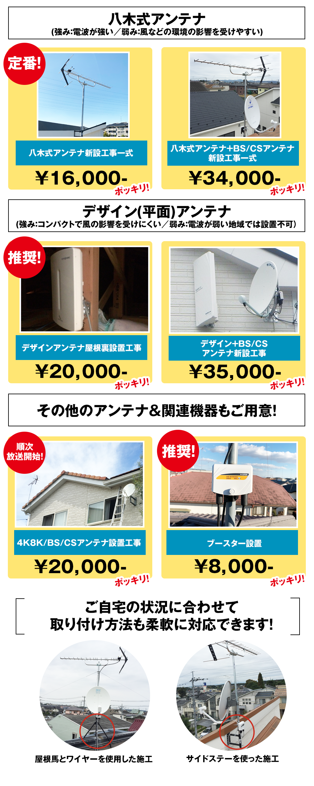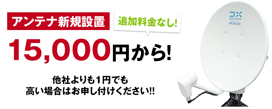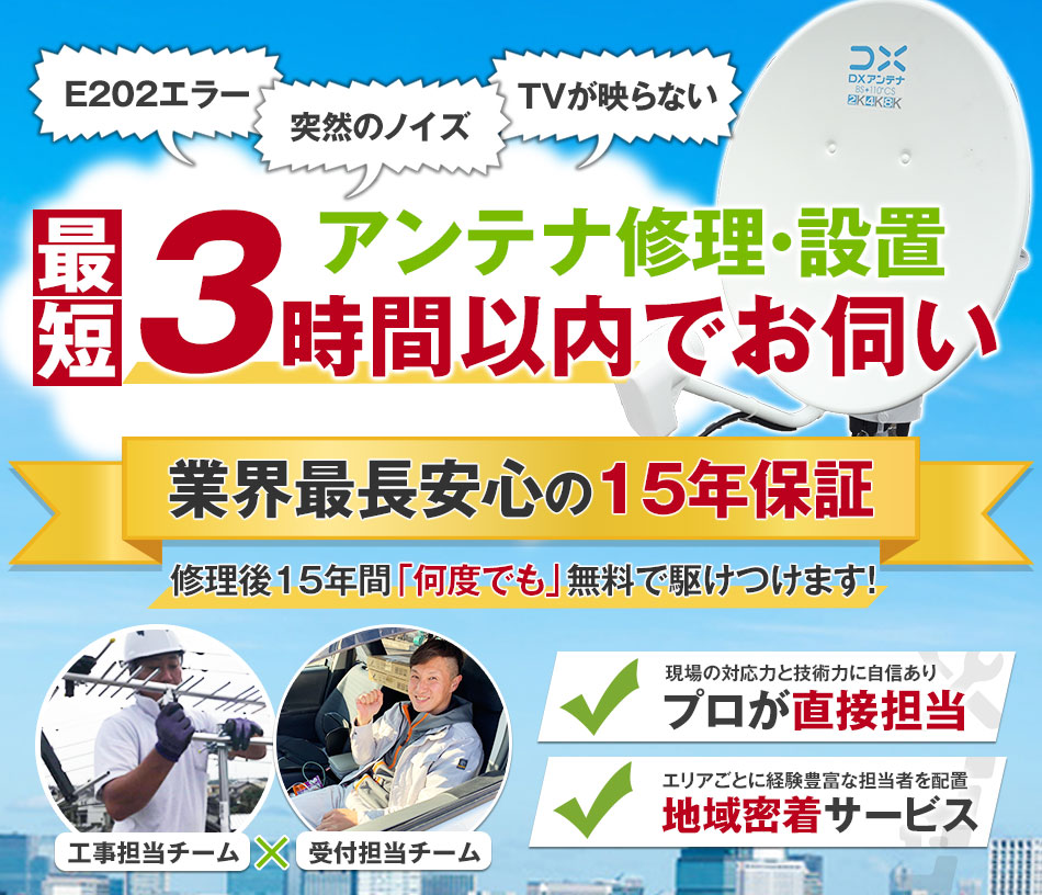 ※完全にアンテナ修理・アンテナ工事を完了できなかったとしても、応急処置をして必ずその日に映るようにしていますのでご安心ください。