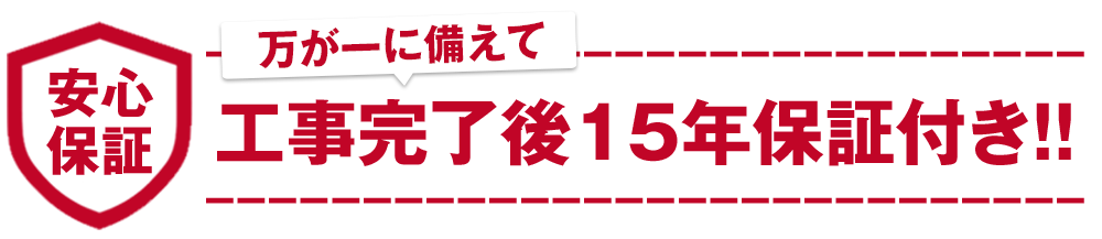 万が一に備えて、工事完了後15年の保証(天災・災害・お客様の過失によるものは保証対象外)をさせていただきます。